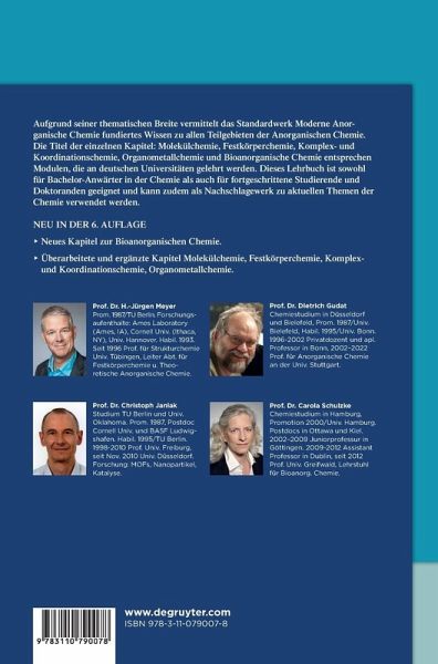 Seit Jahren ist dieses Lehrbuch ein absolutes Standardwerk zur Modernen Anorganischen Chemie. Auf hohem Niveau vermittelt es sehr verständlich fundiertes Wissen und weist geschickt auf die Zusammenhänge der verschiedenen Teilgebiete hin.