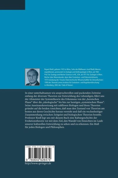 In einer unterhaltsamen wie anspruchsvollen und packenden Zeitreise entlang der diversen Theorien zur Entwicklung des Lebendigen, führt uns der Altmeister der Systemtheorie des Erkennens von der "heroischen Phase" über die "ideologische" bis hin zur heutigen "systemischen Phase". Seine Auseinandersetzung mit zahllosen Biologen und ihren Theorien gründet auf die beiden Ansichten, dass man den Zustand von Theorien am besten aus deren Geschichte heraus versteht und dass ein wechselseitiger Zusammenhang zwischen Zeitgeist und biologischen Theorien besteht. Professor Riedl legt uns mit diesem Buch eine Kulturgeschichte der Evolutionstheorie vor mit dem Ziel, den Wandel von Einsichten im Laufe unserer kulturellen Entwicklung zu sehen und zu erkennen. Ein Muss für jeden Biologen und Philosophen.