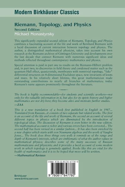 "This is a new translation of a book first published in English in 1987... Translated from Russian...it consists of two separate but related works. The first is an account of the life and work of Riemann, the second an account of several different topics in physics which are illuminated by the introduction of topological ideas. The discussion of Riemann is even better in the new edition. The mathematical account is richer and various errors have been corrected... The second half has been revised in a similar fashion... It has also been enriched by a new chapter which starts with von Neumann algebras and the work of Vaughn Jones... The book does three things very well: it reminds us of the range and depth of Riemann's interests, which are emblematic of what the author values in mathematical physics; describes some of the many successes of Russian mathematicians and physicists; and it provides a lucid account of some modern work in which topology is genuinely applied. Books like this are vital for the health of mathematics and it is to be hoped that more will be written."