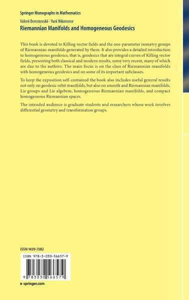 To keep the exposition self-contained the book also includes useful general results not only on geodesic orbit manifolds, but also on smooth and Riemannian manifolds, Lie groups and Lie algebras, homogeneous Riemannian manifolds, and compact homogeneous Riemannian spaces.