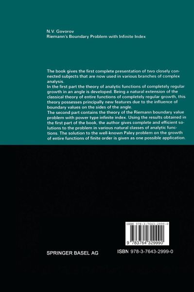 native settlement, in 1950 he graduated - as an extramural studen- from Groznyi Teachers College and in 1957 from Rostov University. He taught mathematics in Novocherkask Polytechnic Institute and its branch in the town of Shachty. That was when his mathematical talent blossomed and he obtained the main results given in the present monograph. In 1969 N. V. Govorov received the degree of Doctor of Mathematics and the aca demic rank of a Professor. From 1970 until his tragic death on 24 April 1981, N. V. Govorov worked as Head of the Department of Mathematical Anal ysis of Kuban' University actively engaged in preparing new courses and teaching young mathematicians. His original mathematical talent, vivid reactions, kindness bordering on self-sacrifice made him highly respected by everybody who knew him. In preparing this book for publication I was given substantial assistance by E. D. Fainberg and A. I. Heifiz, while V. M. Govorova took a significant part of the technical work with the manuscript. Professor C. Prather con tributed substantial assistance in preparing the English translation of the book. I. V. Ostrovskii. PREFACE The classic statement of the Riemann boundary problem consists in finding a function (z) which is analytic and bounded in two domains D+ and D-, with a common boundary - a smooth closed contour L admitting a continuous extension onto L both from D+ and D- and satisfying on L the boundary condition +(t) = G(t)-(t) + g(t).