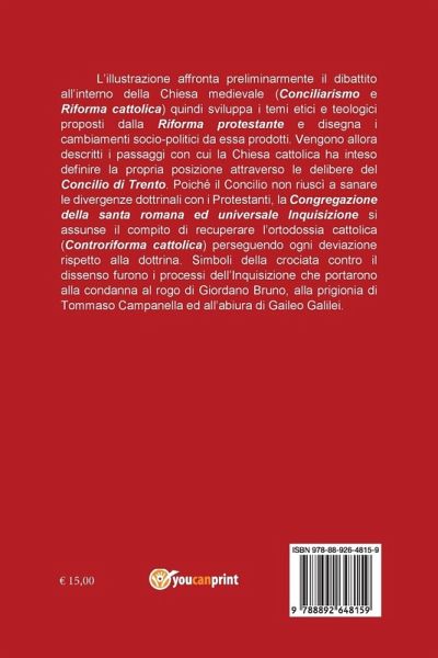 L'illustrazione affronta preliminarmente il dibattito all'interno della Chiesa medievale (Conciliarismo e Riforma Cattolica) prima di sviluppare i temi etici e teologici proposti dalla Riforma protestante e i cambiamenti socio-politici da essa prodotti. Vengono descritti quindi i passaggi attraverso cui la Chiesa Cattolica ha definito la propria posizione attraverso le delibere del Concilio di Trento. Poiché il Concilio non riuscì a sanare le divergenze dottrinali con i Protestanti, la Congregazione della sacra romana ed universale Inquisizione si assunse il compito di recuperare l'ortodossia cattolica (Controriforma cattolica) perseguendo ogni deviazione rispetto alla dottrina. Simboli della crociata contro il dissenso furono i processi che portarono alla condanna al rogo di Giordano Bruno, alla prigionia di Tommaso Campanella e all'abiura di Galileo Galilei.