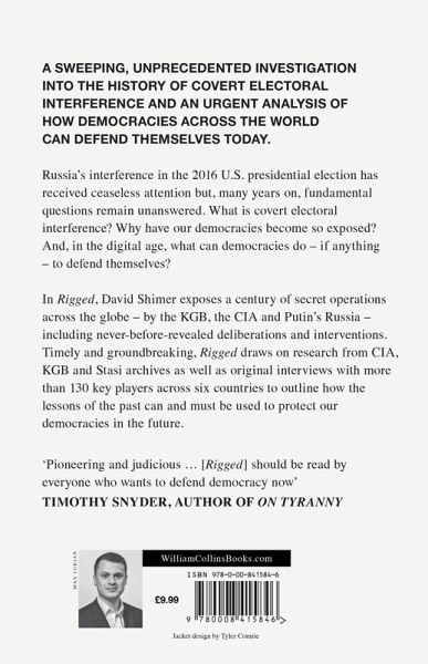 'This pioneering and judicious history of foreign intervention in elections should be read by everyone who wants to defend democracy now.' Timothy Snyder, author of On Tyranny The definitive account of covert operations to influence elections from the Cold War to 2016 - and why the threat is greater than ever in 2020. Russia's interference in 2016 marked only the latest chapter of a hidden and revelatory history. In Rigged, David Shimer tells the sweeping story of covert electoral interference past and present. He exposes decades of secret operations - by the CIA, the KGB, and Vladimir Putin's Russia - to shape electoral outcomes, melding deep historical research with groundbreaking interviews with more than 130 key players, from former CIA directors to a KGB general. What Americans should make of Russia's attack in 2016 is still hotly debated, even after the release of the Mueller Report and years of media coverage. Shimer shows that Putin's operation was, in fact, a continuation of an ongoing struggle, using familiar weapons radically enhanced by new technology. Casting aside partisanship and sensationalism, Rigged reveals new details about what Russia achieved in 2016, how the United States responded, and why Putin has also been interfering in elections across the globe in recent years. Understanding 2016 as one battle in a much longer war is essential to understanding the critical threat currently posed to America's electoral sovereignty and how to defend against it. Illuminating how the lessons of the past can be used to protect our democracy in the future, Rigged is an essential book for readers of every political persuasion.