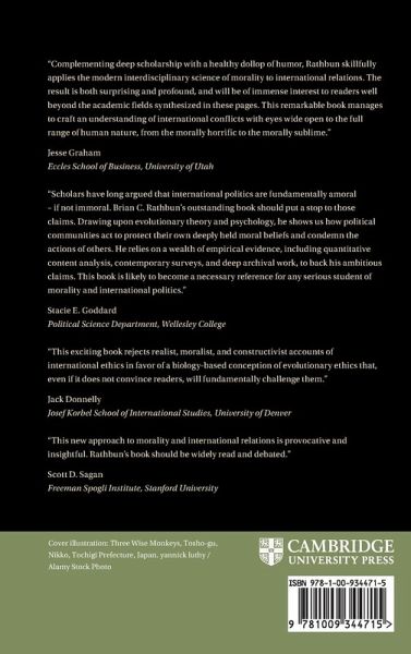 Introduction; 1. The nature in and nature of international relations Brian Rathbun; 2. Lesser angels: moral condemnation and binding morality in international relations Brian Rathbun; 3. Mankind is what anarchy makes of it: the material origins of ethics Brian Rathbun; 4. See no evil, speak no evil?: cross-national micro- and macro foundational evidence of morality's ubiquity Brian Rathbun and Caleb Pomeroy; 5. To provide and to protect: a dual-process model of foreign policy ideology for a dangerous or competitive world Brian Rathbun; 6. Just desserts in the desert: fairness, status and wilhelmine foreign policy during the Moroccan crises Brian Rathbun; 7. Barking dogs and beating drums: nationalism as moral revolution in German foreign policy Brian Rathbun; 8. Biting the bullet: binding morality, rationality and the domestic politics of war termination in Germany during WWI Brian Rathbun; 9. Dying in vain: authoritarian morality causes the German empire to collapse Brian Rathbun; 10. Daily bread: Hitler, moral devolution and Nazi foreign policy Brian Rathbun; 11. From Demonizing to dehumanizing: war under Hitler and the implications for mankind Brian Rathbun.