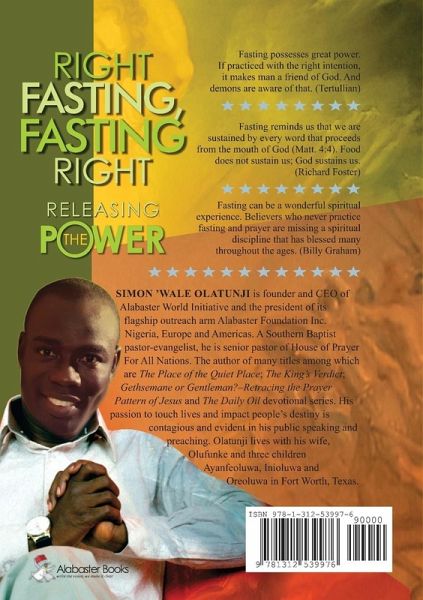 Coming from the background of passion to touch lives and impact people's destiny, SIMON 'WALE OLATUNJI, in this book, answers the question of whatever happens to fasting today. Fasting can be a wonderful spiritual experience. Believers who never practice fasting and prayer are missing out in an important spiritual discipline that has blessed many throughout the ages.