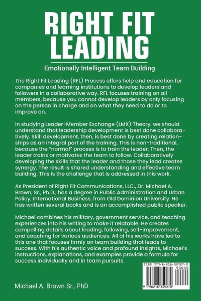 The Right Fit Leading (RFL) Process offers help and education for companies and learning institutions to develop leaders and teams. RFL focuses training on all members, because you cannot develop leaders by only focusing on the person in charge and what they need to do or to improve on. Using Leader-Member Exchange (LMX) Theory based in part on an article by Fred Dansereau, George Graen, and William Haga (1975), you can understand that leadership development is best done collaboratively. Skill development, then, is best done by creating relationships as an integral part of the training. This is non-traditional, because the "normal" process is to train the leader. Then, the leader trains or motivates the team to follow. Collaboratively developing the skills that the leader and those they lead delivers shared understanding and effective team building. This is the challenge that is addressed in this work.