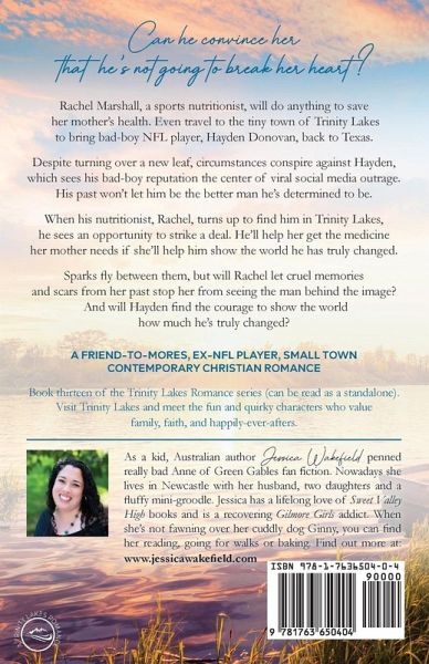 Can he convince her that he's not going to break her heart? Rachel Marshall, a sports nutritionist, will do anything to save her mother's health. Even travel to the tiny town of Trinity Lakes to bring bad-boy NFL player, Hayden Donovan, back to Texas. Despite turning over a new leaf, circumstances conspire against Hayden Donovan that sees his bad-boy reputation the center of viral social media outrage. His past won't let him be the better man he's determined to be. When his nutritionist, Rachel, turns up to find him in Trinity Lakes, he sees an opportunity to strike a deal. He'll help her get the medicine her mother needs if she'll help him show the world he has truly changed. Sparks fly between them, but will Rachel let cruel memories and scars from her past stop her from seeing the man behind the image? And will Hayden find the courage to show the world how much he's truly changed? A friends-to-more, ex-NFL player, small town contemporary Christian romance. Book thirteen of the Trinity Lakes Romance series (can be read as a standalone). Visit Trinity Lakes and meet the fun and quirky characters who value family, faith, and happily-ever-afters.