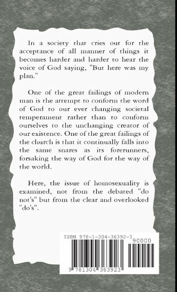 A compelling, simple yet thorough, look at the issue of sexuality. Both sides of the homo/hetero debate seem content to haggle over a few "don't" verses all the while ignoring far more "do" verses.