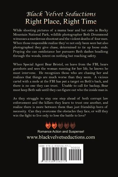 Beth is a wildlife photographer who witnesses a shootout and the violent deaths of four men. When those responsible realize they've not only been seen but also photographed they give chase, determined to tie up loose ends. Beth dashed through the woods, intent on reaching safety.. Special Agent Bristol, heard gunshots and saw a woman running for her life and recognized those who are chasing her and realizes that things are worse than they seem. A vicious cartel with a mole at the FBI has put a target on Beth's back, and there is no one they can trust. Unable to call for backup, Bear must keep Beth safe until they can figure out who the inside man is. As they struggle to stay one step ahead of both corrupt law enforcement and the killers they learn to trust one another, and realize there is more between them than just friendship born of necessity. Can they overcome the obstacles they face, or will they win the fight to live, only to lose the battle to love?