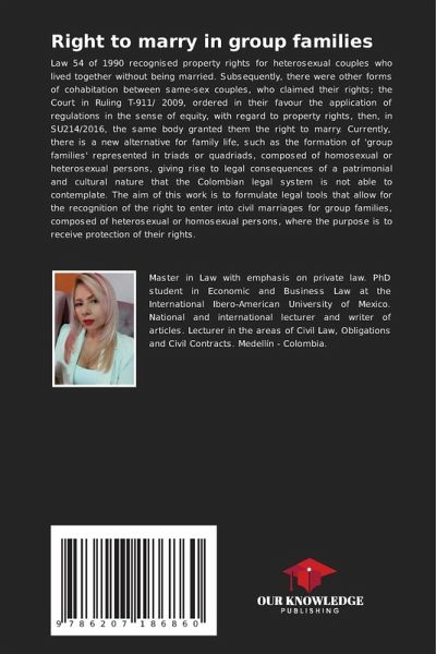 Law 54 of 1990 recognised property rights for heterosexual couples who lived together without being married. Subsequently, there were other forms of cohabitation between same-sex couples, who claimed their rights; the Court in Ruling T-911/ 2009, ordered in their favour the application of regulations in the sense of equity, with regard to property rights, then, in SU214/2016, the same body granted them the right to marry. Currently, there is a new alternative for family life, such as the formation of 'group families' represented in triads or quadriads, composed of homosexual or heterosexual persons, giving rise to legal consequences of a patrimonial and cultural nature that the Colombian legal system is not able to contemplate. The aim of this work is to formulate legal tools that allow for the recognition of the right to enter into civil marriages for group families, composed of heterosexual or homosexual persons, where the purpose is to receive protection of their rights.