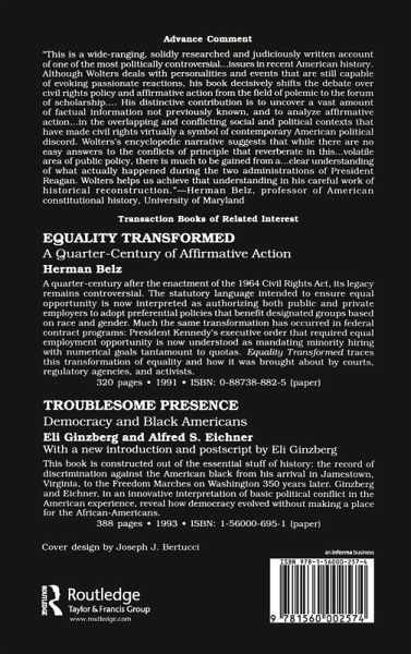 Raymond Wolters maintains that Ronald Reagan and William Bradford Reynolds made the "right turn" when they questioned and limited the use of racial considerations in drawing electoral boundaries. He also documents the Reagan administration's considerable success in reinforcing within the country, and reviving within the judiciary, the conviction that every person - black or white - should be considered an individual with unique talents and inalienable rights. This book begins with a biographical chapter on William Bradford Reynolds, the Assistant Attorney General who was the principal architect of Reagan's civil rights policies. It then analyzes three main civil rights issues: voting rights, affirmative action, and school desegregation. Wolters describes specific cases: at-large elections and minority vote dilutions; congressional districting in New Orleans; legislative districting in North Carolina; the debates over the Civil Rights Act of 1964; social science critiques of affirmative action; the question of quotas; and school desegregation and forced busing. Because Ronald Reagan and William Bradford Reynolds were men of the right, and because most journalists and historians are on the left, Wolters feels the "people of words" have dealt harshly with the Reagan administration. In writing this book, he hopes to correct the record on a subject that has been badly represented.