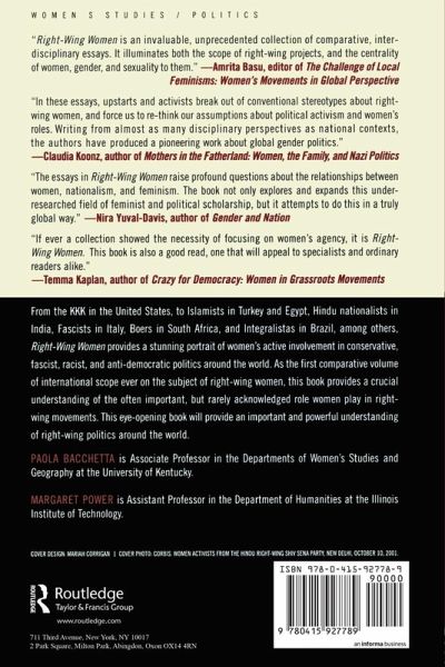"Right-Wing Women is an invaluable, unprecedented collection of comparative, interdisciplinary essays. It illuminates both the scope of right-wing projects, and the centrality of women, gender, and sexuality to them." -- Amrita Basu, editor of The Challenge of Local Feminisms: Women's Movements in Global Perspective