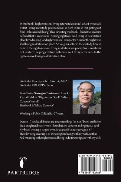 In this book "Righteous soul living actor and creature" what I try to say? It start "living in custody go around was so hard to me so that getting out from in this custody living" I live in writing this book. I found that creature defined that is creature is "hearing righteous soul living in destination place broadcasting" and righteous soul living actor runs for the righteous soul living in destination place. So long, an actor in the custody how to runs to the righteous soul living in destination place, this is solutions is "Creature" helping creature righteous soul living actor runs to the righteous soul living in destination place.