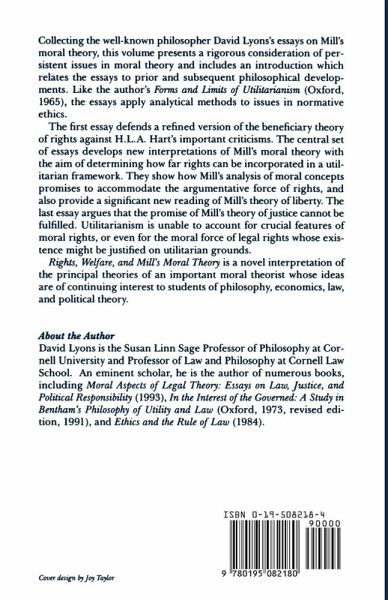 David Lyons's well-known essays on Mill's moral theory are collected in this volume, with an introduction which relates the essays to prior and subsequent philosophical developments. The first essay defends the beneficiary theory of rights. The central set of essays develop new interpretations of Mill's moral theory with the aim of determining how far rights can be incorporated in a utilitarian framework. They also provide a new reading of Mill's theory of liberty. The last essay argues that the promise of Mill's theory of justice cannot be fulfilled, as utilitarianism is unable to account for crucial features of moral rights, or even for the moral force of legal rights whose existence might be justified on utilitarian grounds.