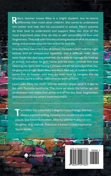 Riley's teacher knows Riley is a bright student, but he learns differently than most other children. She wants to understand him better and help him be successful in school. Riley's parents do their best to understand and support Riley too. One of the most important ways they do this is with unconditional love and forgiveness. They talk with him about being aware of what his brain is doing, and provide ways for him to live his best life. One day Riley has a hard day at school. He hadn't slept well the night before, and an unexpected assembly and a difficult math class have made him feel overwhelmed. He is able to manage his feelings at school, but when he gets home and his mom reminds him that cleaning his room and having a shower is on his schedule that day, he goes into a rage. Both Riley and Mom feel out of control. Neither wants this to happen and they do their best to navigate the big emotions, but it is still an awful time for both of them. Learn with Riley, his mom, and his teacher about what it is like to live with Tourette syndrome. The more we learn, the better we can understand and realize that at the end of the day, love, forgiveness, and acceptance are what's most important.