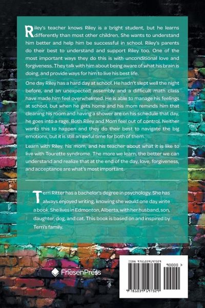 Riley's teacher knows Riley is a bright student, but he learns differently than most other children. She wants to understand him better and help him be successful in school. Riley's parents do their best to understand and support Riley too. One of the most important ways they do this is with unconditional love and forgiveness. They talk with him about being aware of what his brain is doing, and provide ways for him to live his best life. One day Riley has a hard day at school. He hadn't slept well the night before, and an unexpected assembly and a difficult math class have made him feel overwhelmed. He is able to manage his feelings at school, but when he gets home and his mom reminds him that cleaning his room and having a shower is on his schedule that day, he goes into a rage. Both Riley and Mom feel out of control. Neither wants this to happen and they do their best to navigate the big emotions, but it is still an awful time for both of them. Learn with Riley, his mom, and his teacher about what it is like to live with Tourette syndrome. The more we learn, the better we can understand and realize that at the end of the day, love, forgiveness, and acceptance are what's most important.