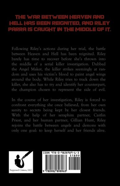 The war between Heaven and Hell has been reignited, and Riley Parra is caught in the middle of it. Following Riley's actions during her trial, the battle between Heaven and Hell has been reignited. Riley barely has time to recover before she's thrown into the middle of a serial killer investigation. Dubbed the Angel Maker, the killer strikes seemingly at random and uses his victim's blood to paint angel wings around the body. While Riley tries to track down the killer, she also has to try and identify her counterpart, the champion chosen to represent the side of evil. In the course of her investigation, Riley is forced to confront everything she once believed, from her own sanity to secrets being kept by her closest friends. With the help of her seraphim partner, Caitlin Priest, and her human partner, Gillian Hunt, Riley rejoins the battle between angels and demons with only one goal: to keep herself and her friends alive. Riley Parra's second season comes from award-winning author Geonn Cannon.
