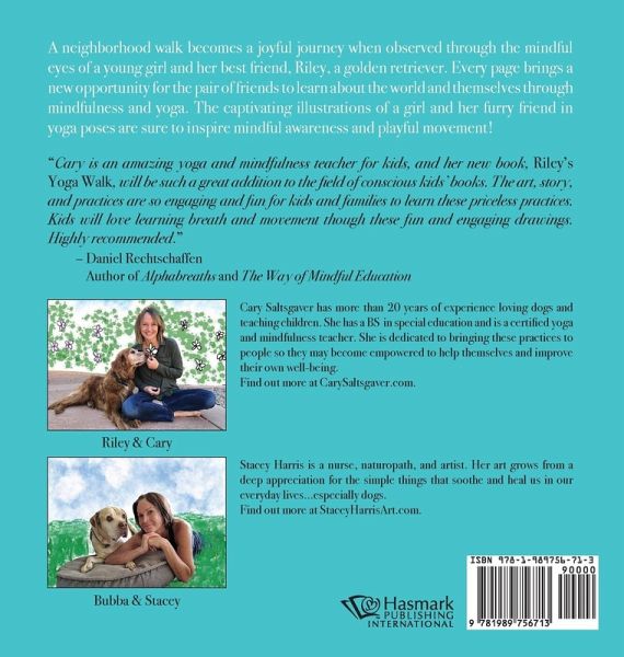 A neighborhood walk becomes a joyful journey when observed through the mindful eyes of a young girl and her best friend, Riley, the golden retriever. Every page brings a new opportunity for the pair of friends to learn about the world and themselves through mindfulness and yoga. The captivating illustrations of a girl and her furry friend in yoga poses are sure to inspire mindful awareness and playful movement!