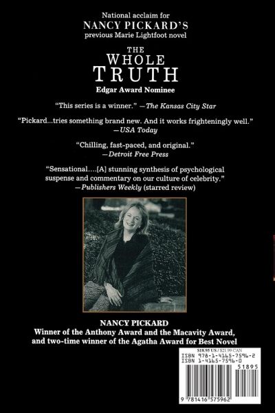 Sex, violence, evil, and betrayal -- the shocking murder case splashed across the Florida headlines has all the right elements for true-crime writer Marie Lightfoot's next bestseller. And tell the tale she does, in a book that reveals the secrets of a love affair gone fatally wrong. But there are disturbing twists, which leave Marie sensing in her gut that something does not jibe. Twist number one: the accused is a man of the cloth, who has allegedly killed his wife in collusion with his lover. Twist number two: a pair of young girls find the body in an abandoned mansion, adding the death of innocence to the magnitude of the crime. Twist number three: a shattering conviction turns the case on its ear. And the ultimate blow: for the first time in her career, Marie fails to win the the killer's confidence during a jailhouse interview. Suddenly, she knows with certainty there ia more to the story than even she realized -- and her conscience won't let her rest. Then an unexpected visitor -- a shock in itself for the reclusive writer -- confesses something that not even the police know. The revelation may he the missing piece in a terrifying puzzle -- evidence that teaches Marie a bone-chilling lesson as threatening danger slowly encircles her: to err is human, but underestimating the criminal mind can be deadly. Nancy Pickard premiered gutsy Marie Lightfoot in the national bestseller The Whole Truth, and kicked off a thrilling new series with "an intriguing story, fascinatingly told" (The Philadelphia Inquirer). Now, Pickard once again "pushes the presumed limits of [crime fiction]" (Los Angeles Times) as she sends this complex heroine into a jagged maze with one destination: the darkest realm of human nature.