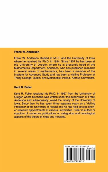 §0. Preliminaries. 1: Rings, Modules and Homomorphisms. §1. Review of Rings and their Homomorphisms. §2. Modules and Submodules. §3. Homomorphisms of Modules. §4. Categories of Modules; Endomorphism Rings. 2: Direct Sums and Products. §5. Direct Summands. §6. Direct Sums and Products of Modules. §7. Decomposition of Rings. §8. Generating and Cogenerating. 3: Finiteness Conditions for Modules. §9. Semisimple Modules The Sode and the Radical. §10. Finitely Generated and Finitely Cogenerated Modules Chain Conditions. §11. Modules with Composition Series. §12. Indecomposable Decompositions of Modules. 4: Classical Ring Structure Theorems. §13. Semisimple Rings. §14. The Density Theorem. §15. The Radical of a Ring Local Rings and Artinian Rings. 5: Functors Between Module Categories. §16. The Horn Functors and Exactness Projectivity and Injectivity. §17. Projective Modules and Generators. §18. Injective Modules and Cogenerators. §19. The Tensor Functors and Flat Modules. §20. Natural Transformations. 6: Equivalence and Duality for Module Categories. §21. Equivalent Rings. §22. The Morita Characterizations of Equivalence. §23. Dualities. §24. Morita Dualities. 7: Injective Modules, Projective Modules, and Their Decompositions. §25. Injective Modules and Noetherian Rings The Faith Walker Theorems. §26. Direct Sums of Countably Generated Modules With Local Endomorphism Rings. §27. Semiperfect Rings. §28. Perfect Rings. §29. Modules with Perfect Endomorphism Rings. 8: Classical Artinian Rings. §30. Artinian Rings with Duality. §31. Injective Projective Modules. §32. Serial Rings. References.