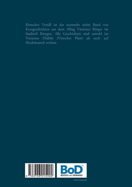 Rintscher Vertäll ist der nunmehr siebte Band von Kurzgeschichten aus dem Alltag Viersener Bürger im Stadtteil Rintgen. Alle Geschichten sind sowohl im Viersener Dialekt (Vierscher Platt) als auch auf Hochdeutsch verfasst.