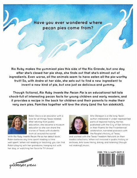 Have you ever wondered where pecan pies come from? Join Rio Ruby and her sidekick, Andre the Armadillo, on their tall tale adventures as they find out! Rio Ruby makes the yummiest pies this side of the Rio Grande, but one day after she's closed her pie shop, she finds out that she's almost out of ingredients. Even worse, all the animals seem to have eaten all the pie-worthy fruit! So, with Andre at her side, she sets out to find a new ingredient to invent a new kind of pie, but one just as delicious and yummy. Though fictional, Rio Ruby Invents the Pecan Pie is an educational tall tale chock-full of interesting pecan facts for young children and early readers, and it provides a recipe in the back for children and their parents to make their very own pies. Families together will love the story (and the fun sidekick!).