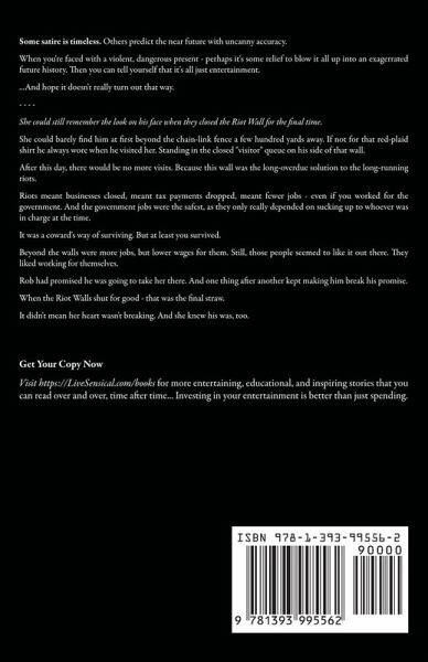 Some satire is timeless. Others predict the near future with uncanny accuracy. When you're faced with a violent, dangerous present - perhaps it's some relief to blow it all up into an exagerrated future history. Then you can tell yourself that it's all just entertainment. ...And hope it doesn't really turn out that way. - - - - She could still remember the look on his face when they closed the Riot Wall for the final time. She could barely find him at first beyond the chain-link fence a few hundred yards away. If not for that red-plaid shirt he always wore when he visited her. Standing in the closed "visitor" queue on his side of that wall. After this day, there would be no more visits. Because this wall was the long-overdue solution to the long-running riots. Riots meant businesses closed, meant tax payments dropped, meant fewer jobs - even if you worked for the government. And the government jobs were the safest, as they only really depended on sucking up to whoever was in charge at the time. It was a coward's way of surviving. But at least you survived. Beyond the walls were more jobs, but lower wages for them. Still, those people seemed to like it out there. They liked working for themselves. Rob had promised he was going to take her there. And one thing after another kept making him break his promise. When the Riot Walls shut for good - that was the final straw. It didn't mean her heart wasn't breaking. And she knew his was, too. But she had to turn away. Because everyone had to turn away. Someone in power was addressing their "citizens" over the city's PA system. And they had to listen "attentively" - If they wanted to keep their jobs, their housing, and what they considered a life here inside these walls... Anthology containing: Riot Wall by S. H. Marpel, R. L. Saunders The Panic of 2020 by S. H. Marpel, R. L. Saunders Our Second Civil War by R. L. Saunders, C. C. Brower Becoming Michelle by R. L. Saunders, C. C. Brower A Sweet Fortune by R. L. Saunders The Projector by S. H. Marpel, R. L. Saunders Scroll Up And Get Your Copy Now.