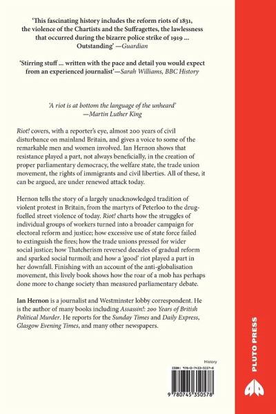 'A riot is at bottom the language of the unheard.' Martin Luther King Riot! covers, with a reporter's eye, almost 200 years of civil disturbance on mainland Britain, and gives a voice to some of the remarkable men and women involved. Ian Hernon shows that resistance played a part, not always beneficially, in the creation of proper parliamentary democracy, the welfare state, the trade union movement, the rights of immigrants and civil liberties. All of these, it can be argued, are under renewed attack today. Hernon tells the story of a largely unacknowledged tradition of violent protest in Britain, from the martyrs of Peterloo to the drug-fuelled street violence of today. Riot! charts how the struggles of individual groups of workers turned into a broader campaign for electoral reform and justice; how excessive use of state force failed to extinguish the fires; how the trade unions pressed for wider social justice; how Thatcherism reversed decades of gradual reform and sparked social turmoil; and how a"good"riot played a part in her downfall. Finishing with an account of the anti-globalisation movement and G8 protests, this lively book shows how the ugly roar of a mob has perhaps done more to change society than measured parliamentary debate.