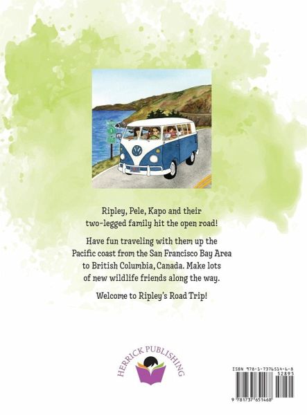 Ripley, Pele, Kapo and their two-legged family hit the open road in their newly converted electric van! Have fun traveling with them up the Pacific Coast, from the San Francisco Bay Area to Vancouver, British Colombia. Dip your toe beans in the big blue ocean and make lots of new splashing, hopping, burrowing friends along the way! A wonderful book for elementary school readers, filled with vibrant watercolor illustrations and engaging, funny animal adventures. Welcome to Ripley's Road Trip, book 3 in the Ripley and Friendz collection!