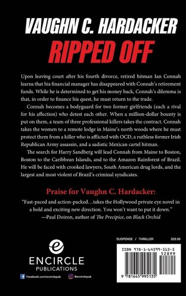 Here's some free advice: Retired or not, never double-cross a hitman.¿Upon leaving court after his fourth divorce, retired hitman Ian Connah learns that his financial manager has disappeared with Connah's retirement funds. While he is determined to get his money back, Connah's dilemma is that, in order to finance his quest, he must return to the trade. Connah becomes a bodyguard for two former girlfriends (each a rival for his affection) who detest each other. When a million-dollar bounty is put on them, a team of three professional killers takes the contract. Connah takes the women to a remote lodge in Maine's north woods where he must protect them from a killer who is afflicted with OCD, a ruthless former Irish Republican Army assassin, and a sadistic Mexican cartel hitman. The search for Harry Sandberg will lead Connah from Maine to Boston, Boston to the Caribbean Islands, and to the Amazon Rainforest of Brazil. He will be faced with crooked lawyers, South American drug lords, and the largest and most violent of Brazil's criminal syndicates.