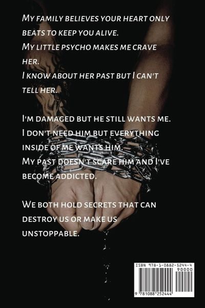 When he saw me he still wanted me despite my crazy. I'm damaged and finally free. He tries to give me peace because he thinks that I deserve it. He protects me like I'm his own lifeline. I can handle myself and I don't need him but everything inside of me wants him. There's one person that has always shown up and I know he will come for me like he always has, only this time I'm hoping he doesn't. My family believes your heart only beats to keep you alive. I have never known what it was like to be in love. I escaped my blood. I found a new family. When I was at my lowest, I found her. Her crazy drew me in. It's whom she is that made me want her. I know about her past but I can't tell her. I still want to give her everything she deserves even though she doesn't know what I did and she will hate me when she finds out the truth. We both hold secrets that can destroy us or make us unstoppable.