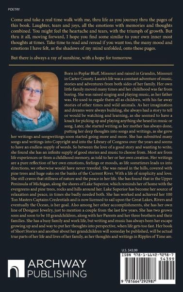 Come and take a real time walk with me, thru life as you journey thru the pages of this book. Laughter, tears and joys, all the emotions with memories and thoughts combined. You might feel the heartache and tears, with the triumph of growth. But thru it all, moving forward, I hope you find some similar to your own inner most thoughts at times. Take time to read and reread if you want too, the many mood and emotions I have felt, as the shadows of my mind unfolded, onto these pages. But there is always a ray of sunshine, with a hope for tomorrow.