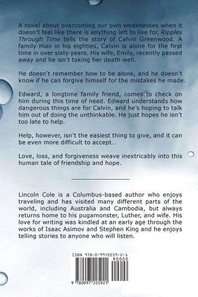 Calvin Greenwood is a family man in his eighties. He is alone for the first time in over sixty years: his wife, Emily, just passed away and he isn't taking her loss well. He doesn't remember how to be alone, and he isn't sure if he can forgive himself for the mistakes he made while she was alive. Edward White is a long time family friend who knows something is wrong with Calvin. He comes to check on him during his time of need and make sure he isn't planning to do anything reckless. Edward understands just how dangerous things are for someone struggling the way Calvin is, and he hopes talking to him can settle things back down. He just hopes he isn't too late to help. Help, however, isn't the easiest thing to give, and it can be even more difficult to accept... Love, loss, and forgiveness weave through this human tale of friendship and hope.