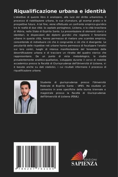 L'obiettivo di questo libro è analizzare, alla luce del diritto urbanistico, il processo di riabilitazione urbana, le sue sfumature, gli esempi pratici e le prospettive future. A tal fine, viene effettuato un confronto empirico-giuridico tra le realtà di due città: la capitale portoghese, Lisbona, e la città brasiliana di Vitória, nello Stato di Espírito Santo. La presentazione di elementi storici e identitari, le disposizioni dei diplomi giuridici che regolano il fenomeno urbano in queste città, hanno permesso di rivelare uno scambio empirico, consentendo di individuare ciò che è congruente e ciò che è divergente. Le peculiarità delle rispettive reti urbane hanno permesso di focalizzare l'analisi sui loro centri, luoghi di intensa manifestazione del fenomeno della desertificazione urbana e di tracciare un ritratto del quadro storico che rappresentano. Da un punto di vista metodologico, lo studio prevalentemente analitico-qualitativo, sviluppato durante il corso di mobilità accademica presso la Facoltà di Giurisprudenza dell'Università di Lisbona, si è basato anche su dati statistici, i cui risultati informano il processo di riqualificazione urbana.