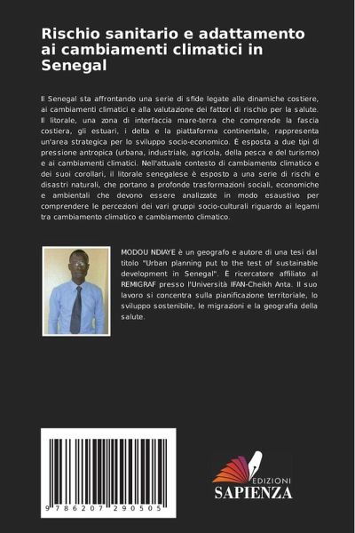 Il Senegal sta affrontando una serie di sfide legate alle dinamiche costiere, ai cambiamenti climatici e alla valutazione dei fattori di rischio per la salute. Il litorale, una zona di interfaccia mare-terra che comprende la fascia costiera, gli estuari, i delta e la piattaforma continentale, rappresenta un'area strategica per lo sviluppo socio-economico. È esposta a due tipi di pressione antropica (urbana, industriale, agricola, della pesca e del turismo) e ai cambiamenti climatici. Nell'attuale contesto di cambiamento climatico e dei suoi corollari, il litorale senegalese è esposto a una serie di rischi e disastri naturali, che portano a profonde trasformazioni sociali, economiche e ambientali che devono essere analizzate in modo esaustivo per comprendere le percezioni dei vari gruppi socio-culturali riguardo ai legami tra cambiamento climatico e cambiamento climatico.