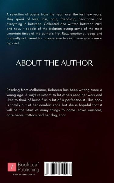 A selection of poems from the heart over the last few years. They speak of love, loss, pain, friendship, heartache and everything in between. Collected and written between 2021 and now, it speaks of the isolation during some of the most uncertain times of the author's life. Raw, emotional, deep and originally not meant for anyone else to see, these words are a big deal.