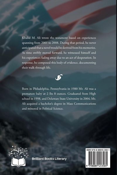 Khalid M. Ali wrote the testament based on experiences spanning from 2001 to 2008. During that period, he never anticipated that a novel would be derived from his memories. As time swiftly moved forward, he witnessed himself and his experiences fading away due to an act of desperation. In response, he composed this body of evidence, documenting their walk through life.