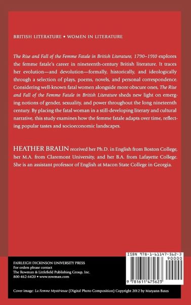 The Rise and Fall of the Femme Fatale in British Literature, 1790–1910explores the femme fatale’s careerin nineteenth-century British literature. It traces her evolution—and devolution—formally, historically, and ideologically through a selection of plays, poems, novels, and personal correspondence. Considering well-known fatal women alongside more obscure ones, this study sheds new light on emerging notions of gender, sexuality, and power throughout the long nineteenth century.