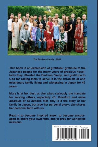 This book chronicles 45 years of missionary work experiences of the Peter and Mary Derksen family, in Japan. The book is a reflection of the extent to which Peter and Mary took seriously the mandate they were given to "make disciples of all nations" in Japan. This book gives the reader a glimpse into the life of the Derksen family as they lived and worked alongside the Japanese people for 45 years.