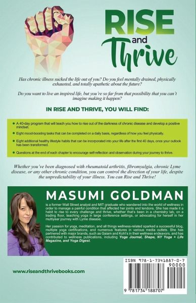 Develop the powerful habits that will help you navigate the ups and downs of chronic illness with inspiration and hope! Are you tired of living with chronic illness? Do you feel discouraged about the dreams and goals that you've put on the back burner as a result of your pain and exhaustion? When each day feels like a struggle, chronic illness takes more from you than just your physical health. It also robs you of your positive outlook on life. As overwhelmed and exhausted as you might be right now, you can get started TODAY with very specific habits that will boost your mood and empower your mindset. You can begin the process of getting energized and inspired once again. The right habits will help you regain control over the trajectory of your future and build the life that you deserve-even if that life doesn't resemble the life you had before your diagnosis. By implementing the habit-based program within these pages, you will generate the energy that you need to plan a life that you want to live. The idea behind this habit-based approach is that it's much easier to cultivate a positive outlook than it is to convince yourself of one. This book straddles the worlds of personal development and mindfulness. It is NOT intended to be a healing manual. Think of it as a how-to-thrive manual. In Rise and Thrive, you will find: A 40-day program that will teach you how to develop a mindset that is conducive to thriving. Eight mood-boosting tasks that can be completed on a daily basis, regardless of how you feel physically. Eight additional healthy lifestyle habits that can be incorporated into your life after the first 40 days, once your outlook has been transformed. Questions at the end of each chapter to encourage self-reflection and observation during your journey to thrive. Access to a FREE companion workbook once you purchase this book. Details to download the workbook are included inside. You do NOT have to wait to heal in order to live well. Whether you've been diagnosed with rheumatoid arthritis, lupus, fibromyalgia, chronic Lyme disease, or any other chronic condition, you can control the direction of your life, despite the unpredictability of your illness.
