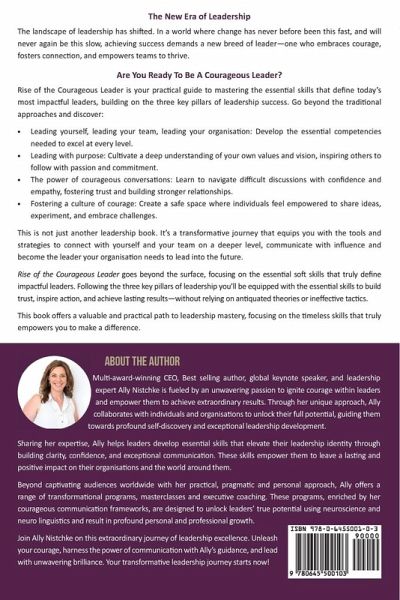 A new era of leadership Leadership as we know it is changing. Leaders are looking for a better way to lead and engage their people. With constant and relentless change being the norm today, leaders are trying to do more with less, remain customer-centric and keep their teams adapting to the new world of work. The challenge all leaders face today is finding and keeping great people; to feel they're connected and engaged. To do this leaders need to be able to be courageous, have courageous conversations and drive a culture of courage in their organisation. Are you ready to step up to the next era of leadership? Rise of the Courageous Leader outlines the important skills you need to start flexing to make leadership easier, more enjoyable and more impactful. It explores and uncovers the soft skills you need to Lead Yourself, Lead your Team and Lead your Organisation. Rise Of The Courageous Leader is a practical approach to leadership to Inspire you as a leader, Influence your team and have a massive Impact within your organisation. It does a deep dive into how leaders can really lead their teams with connection, empathy and courage.