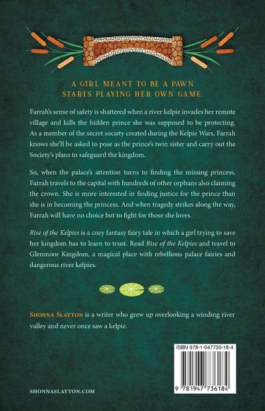 A girl meant to be a pawn starts playing her own game. Farrah's sense of safety is shattered when a river kelpie invades her remote village and kills the hidden prince she was supposed to be protecting. As a member of the secret society created during the Kelpie Wars, Farrah knows she'll be asked to pose as the prince's twin sister and carry out the Society's plans to safeguard the kingdom. So, when the palace's attention turns to finding the missing princess, Farrah travels to the capital with hundreds of other orphans also claiming the crown. She is more interested in finding justice for the prince than she is in becoming the princess. And when tragedy strikes along the way, Farrah will have no choice but to fight for those she loves. Rise of the Kelpies is a cozy fantasy fairy tale in which a girl trying to save her kingdom has to learn to trust. Read Rise of the Kelpies and travel to Glenmoor Kingdom, a magical place with rebellious palace fairies and dangerous river kelpies.