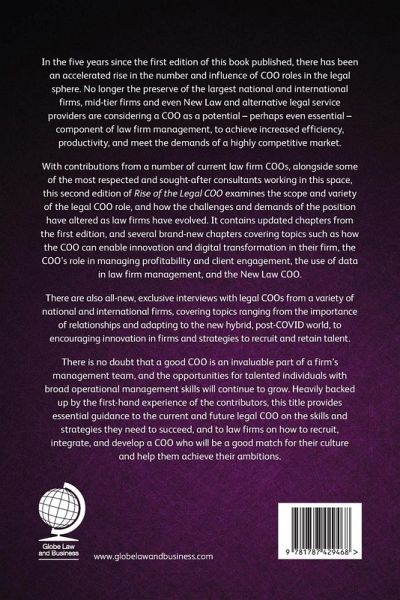 This second edition contains updated chapters from the first edition, and several brand new chapters. There are also all-new, exclusive interviews with legal COOs from a variety of national and international firms.