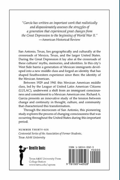 San Antonio, Texas, lies geographically and culturally at the crossroads of Mexico, Texas, and the larger United States. During the Great Depression it lay also at the crossroads of these cultures' myths, memories, and identities. Between 1929 and 1941, in this city's West Side barrio, a generation of Mexican immigrants developed into a new middle class and forged an identity that has shaped Southwestern experience since then: the identity of the Mexican American. Richard Garcia presents an innovative study of the tension between change and continuity in thought, culture, and community that characterized this transformation. His analysis focuses on both the conservative Mexican-exile ricos, who promoted a perspective of Lo Mexicano and a return to la patria, and the rising Mexican American middle class, who sought a life of Americanism that stressed social integration, education, political rights and power, and economic betterment for both individuals and the ethnic community. Members of this middle class wanted to be Americans politically while remaining Mexicans culturally. Garcia's argument is the first to link the ethnic identity of the Mexican American generation to the rise of the middle class within the immigrant community. He also takes into account the Mexican community's structural relationship to the city, the process of class differentiation within the barrio, and the role of family, church, education, and politics. Through the microcosm of San Antonio, this pioneering study explores the process of changing consciousness that was occurring throughout the United States during this important period.