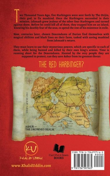 Two thousand years ago, five Harbingers were sent forth by The Orijin, their god, to fix mankind. Once the Harbingers succeeded in their mission, Jahmash grew jealous of the other four Harbingers and turned against them. Before he could kill all of them, they trapped him on an island, knowing his deathly fear of the seas, to spend the rest of his existence in exile. Now, centuries later, chosen Descendants of Darian find themselves with magical abilities and black lines on their faces, tasked with saving mankind from Jahmash's return. They must learn to use their mysterious powers, which are specific to each of them, while being hunted by their own king's armies. Time is running short for the Descendants. Hunted by the very people they are supposed to protect, can they save Ashur from its greatest threat: The Red Harbinger?
