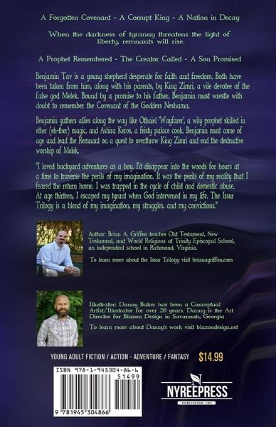 Benjamin Tav is a young shepherd desperate for faith and freedom. Both have been taken from him, along with his parents, by King Zimri, a vile devotee of the false god Melek. Bound by a promise to his father, Benjamin must wrestle with doubt to remember the Covenant of the creator Goddess Neshama. Benjamin gathers allies along the way like Othniel 'Wayfarer', a wily prophet skilled in ether (eh-ther) magic, and Ashira Keros, a feisty palace cook. Benjamin must come of age and lead the Remnant on a quest to overthrow King Zimri and end the destructive worship of Melek.
