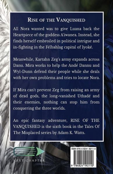 All Nora wanted was to give Luana back the Heartpiece of the goddess A'iwanea. Instead, she finds herself embroiled in political intrigue and in-fighting in the Félbahlag capital of Iyoké. Meanwhile, Kartahn Zeg's army expands across Danu. Mira works to help the Andé Dannu and Wyl-Dunn defend their people while she deals with her own problems and tries to locate Nora. If Mira can't prevent Zeg from raising an army of dead gods, the long-vanished Uthadé and their enemies, nothing can stop him from conquering the three worlds. An epic fantasy adventure, RISE OF THE VANQUISHED is the sixth book in the Tales Of The Misplaced series by Adam K. Watts.