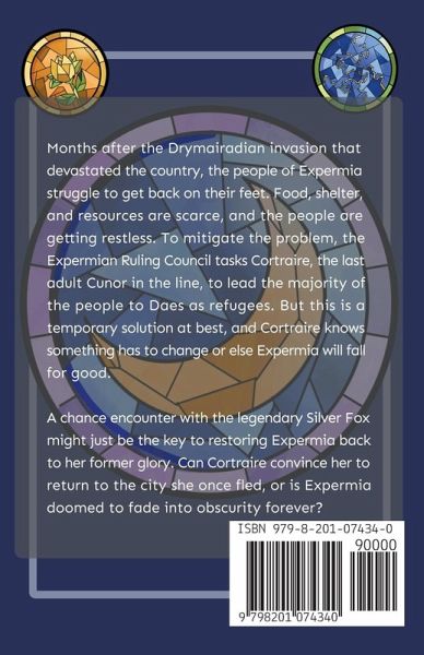 Months after the Drymairadian invasion that devastated the country, the people of Expermia struggle to get back on their feet. Food, shelter, and resources are scarce, and the people are getting restless. To mitigate the problem, the Expermian Ruling Council tasks Cortraire, the last adult Cunor in the line, to lead the majority of the people to Daes as refugees. But this is a temporary solution at best, and Cortraire knows something has to change or else Expermia will fall for good. A chance encounter with the legendary Silver Fox might just be the key to restoring Expermia back to her former glory. Can Cortraire convince her to return to the city she once fled, or is Expermia doomed to fade into obscurity forever?