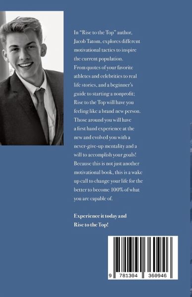Rise to the Top guides the mind and body to reach their full potential in a unique format tailored to everyone! Motivational quotes from your favorite celebrities and athletes to real life, relatable stories; this book contains the potential to uplift your life to what you have always wished for. 21 steps and information to transform your life for not only yourself, but those around you! There is also a beginner's guide to starting a Nonprofit at the end! Order today to Rise to the Top!