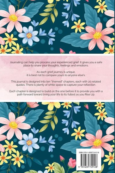 Losing a spouse or life partner is one of the hardest life events anyone can go through. This journey is a very personal one and will unfold in its own time. There is so much emotion and confusion that needs to be processed, yet you often don't have the tools to help with the grief and healing journey of this new reality. This journal can be just such a tool. The Rise Up: A Widow's Journal captures and tames the thoughts and feelings that might be swirling around in the head and heart of a widow. It is thoughtfully organized into ten chapters that guide along various stages of widowhood, from finding oneself suddenly single to moving forward and living again. Each chapter is illustrated and begins with five questions or thoughts to ponder, followed by 20 quotes to prompt journaled thoughts. It contains essential topics to think about such as faith, love, wisdom, gratitude, and money. It can be followed as laid out or used to turn around a specific piece of this journey. This journal can be a tool that will help a widow process her feelings and empower her with strength and courage to embrace the full life that awaits her. It is designed to be a caring gift for someone whose husband or life partner died recently or in the past few years.